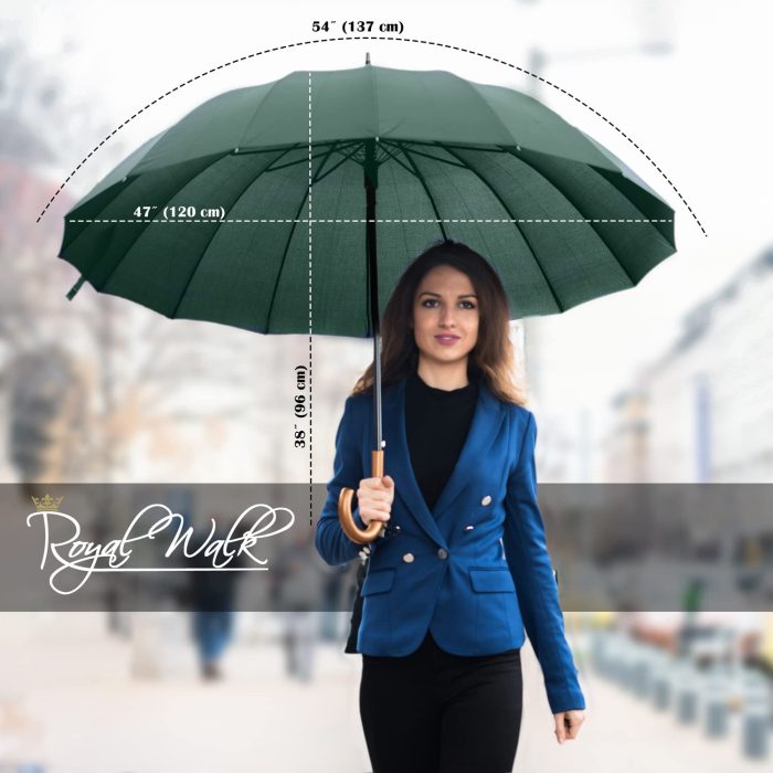 – The RoyalWalk Umbrella comes with a Black SHOULDER STRAP CARRY SLEEVE so you don‘t have to worry about the transportation. It is very compact and elegant when folded in the sleeve.