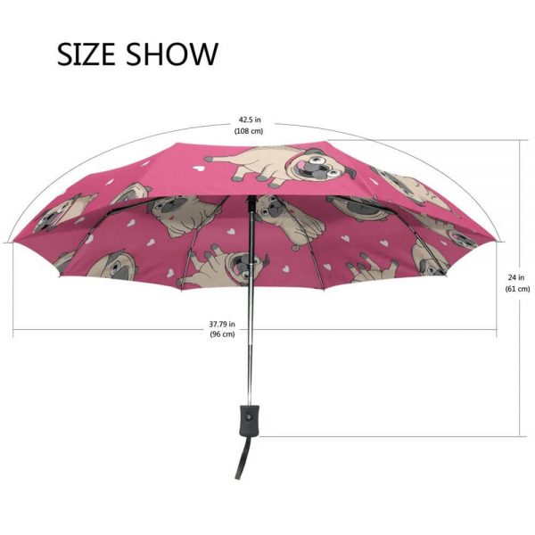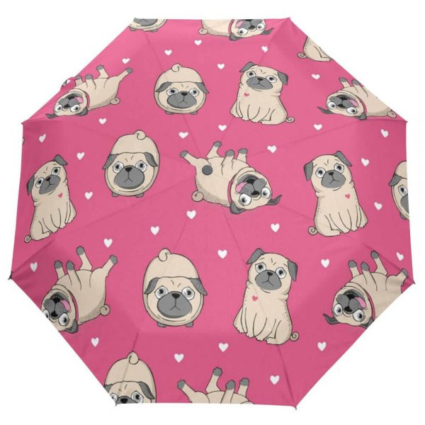 Custom Design Dogs Printed Umbrella with Branded Logo from China Youchi Factory. Dogs Printed on Umbrella Canopy and Pouch, Branded Logo Printed on Tie Wrap or Handle.