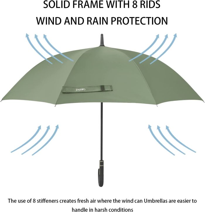4.【OPENS FAST】Auto-opening button ensures that your comfort will not be delayed. Just press the button on the handle the golf umbrella will open in seconds.