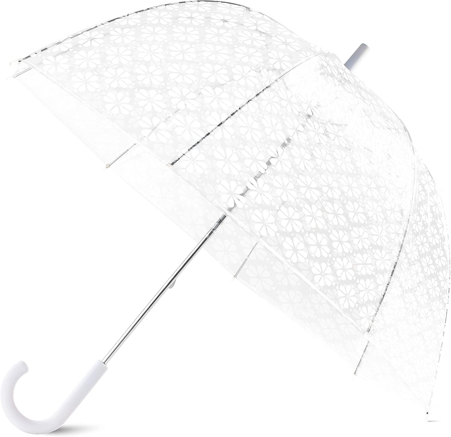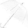 custom umbrella with logo Clear Dome Umbrella. Lightweight & easy to hold. When expanded this clear umbrella measures 35 inches (88.9 cm) wide. Umbrella is made of clear plastic for easy visibility in weather. Curved handle is easy and comfortable to carry. When was the last time you actually wished for rain? You will be hoping for afternoon showers just so this lovely custom umbrella with logo rain umbrella can get some exposure. We love how the transparent umbrella earns its place as a stylish accessory and you will love how it will keep a rain-soaked bad-hair-day at bay. This cute umbrella is featured in a clear design with a white polka dot design. Portable umbrella measures 32.5 inches (82.5 cm) long and 35 inches (88.9 cm) wide and has a curved handle. This clear bubble umbrella makes the perfect wedding day accessory birthday present or Mother’s Day gift!