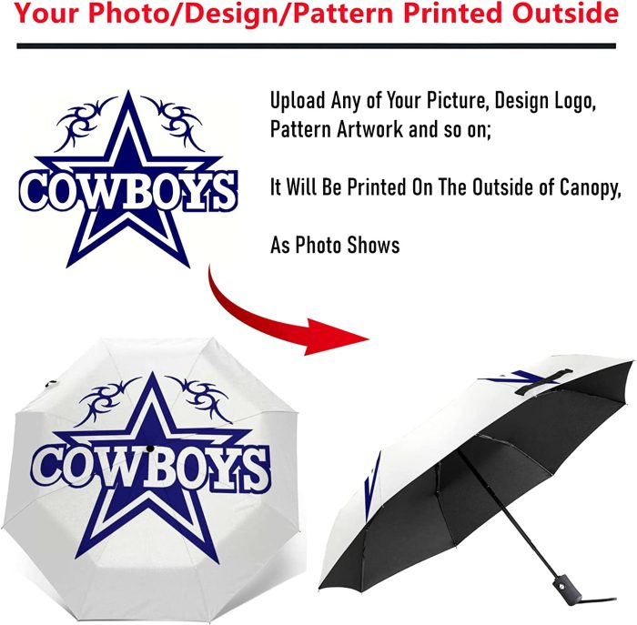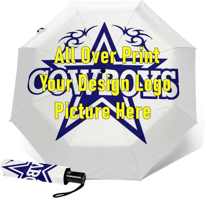This is an multipurpose foldable umbrella Your pictures logo pattern design name or text designs and so on can be all over printed on the canopy it’s the unique customized umbrella; Also this umbrella has a variety of useful functions: Excellent water resistant Perfect UV blocking Auto open and Auto close Strong wind resistant Lightweight and Portable etc.