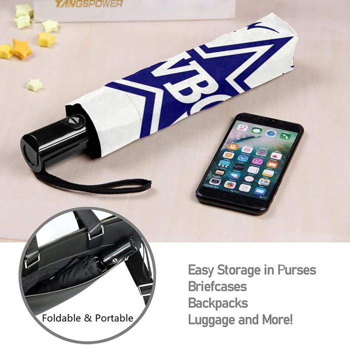 FEATURES OF THIS UMBRELLA: Foldable Compact Automatic open and close Portable Windproof UPF 50+ UV protection and waterproof suitable for sunny or rainy days also perfect for women men boys and girls. This is an multipurpose automatic customized umbrella.