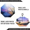 CUSTOMIZE: This is an custom inverted umbrella; As photo shows your own design image pattern logo or name artwork will be printed on the outside and inside of canopy and the both sides can be printed with different photos or designs. Click Customize” and upload your file then edit and adjust the position and size of the photo Pictures with 2000×2000 pixels and above can get better printing results please kindly be noted.