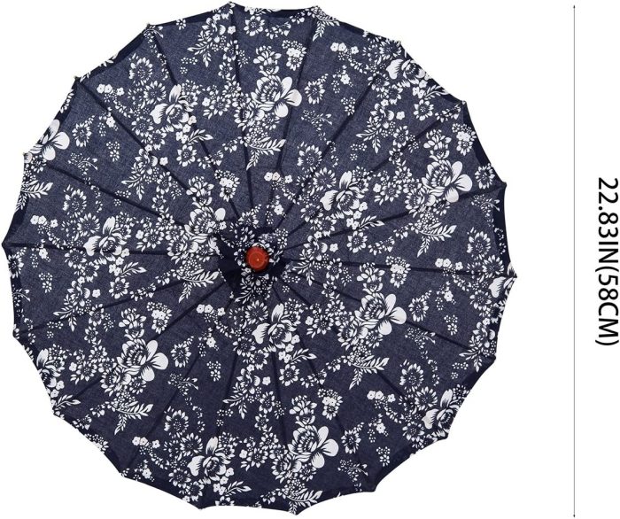 custom umbrella with logo Japanese Chinese Asian Parasol Umbrella 22″ Beautiful Blue-and-White Floral Design