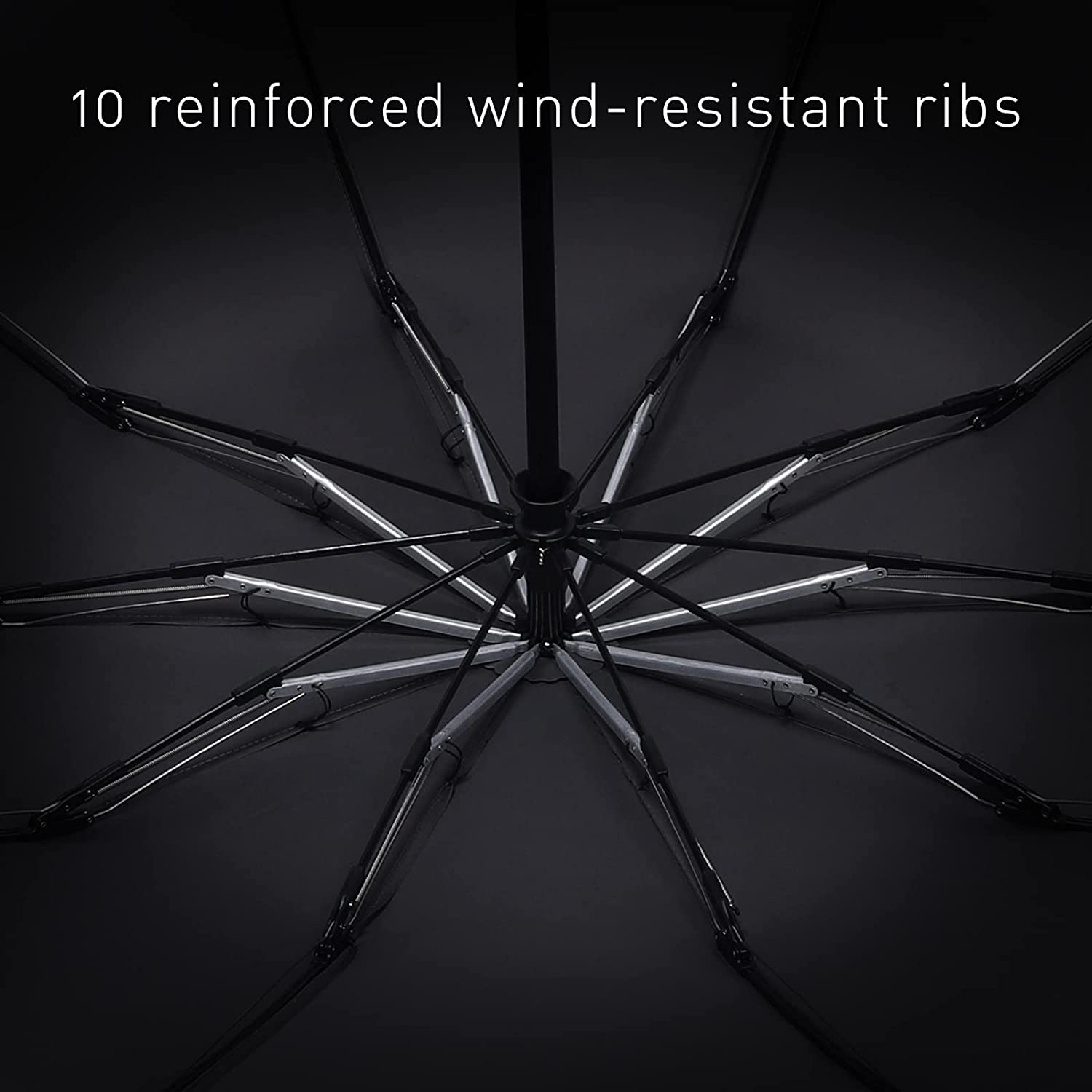 The 10 reinforced fiberglass ribs and Aluminum frame (not like6-ribs 8-ribs) allow umbrellas to withstand more intense storms to prevent them from blowing over.