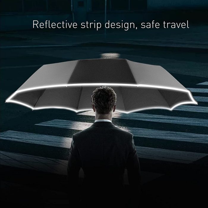 Our compact travel umbrella can keep you safe at a dark night .You can be seen when the car light illuminated on you by the highlight reflective strip.