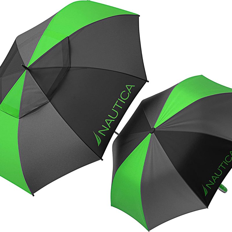 This ergonomic umbrella’s frame has a strong wind-resistant spring and an auto-open button. Its canopy size saves space while comfortably covering 2 people.