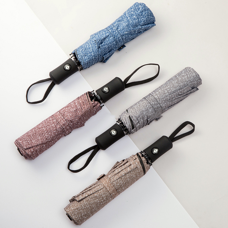 Custom UV Protection 3-Fold Automatic Black Umbrella for Outdoor Use