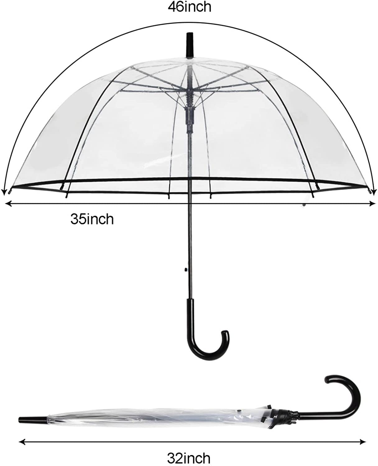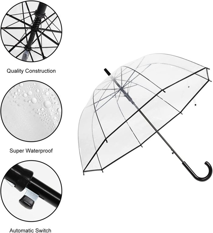 AUTO OPEN: The clear umbrella is an automatic open design. Push the little button on the handle and it opens in a second. With this convenient design they can protect you in the event of sudden rain