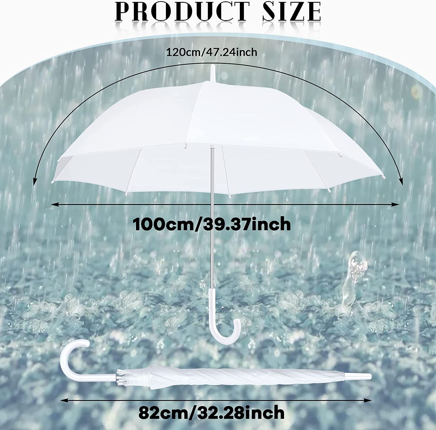 (Buy one week before your wedding to avoid delivery delays!) Package Included: you will receive 12 pieces of clear umbrellas in this package enough for your daily use and replacement; The transparent rain umbrella opening is 39.37 inches in diameter and the shaft is 32.28 inches long providing secure coverage for two and more people offering excellent protection