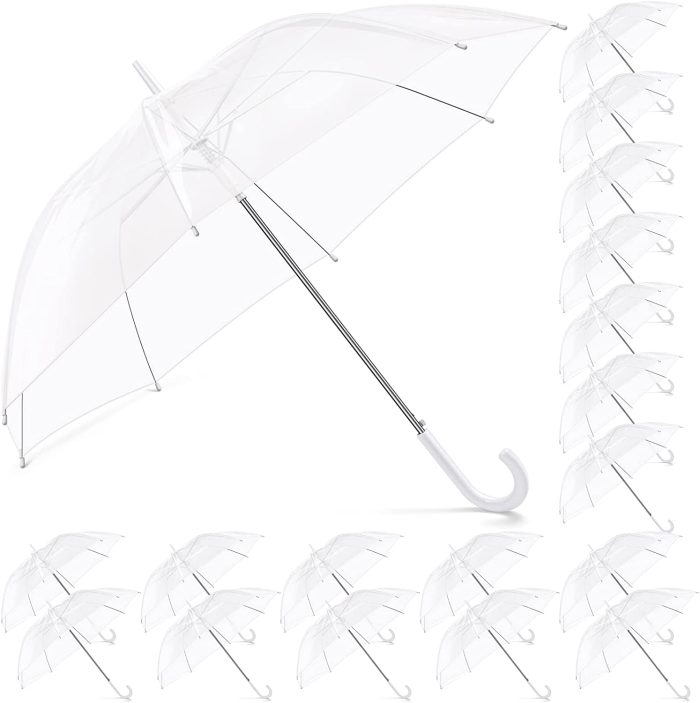 (Buy one week before your wedding to avoid delivery delays) What You Will Get: you will receive 18 pieces of this clear umbrella wedding which can not only meet your daily use and replacement needs but also enable you to share with your family and friends; The opening diameter of the umbrella is 39.37 inches/ 100 cm and the length of the umbrella shaft is 32 inches/ 82 cm which can be applied by 2 people