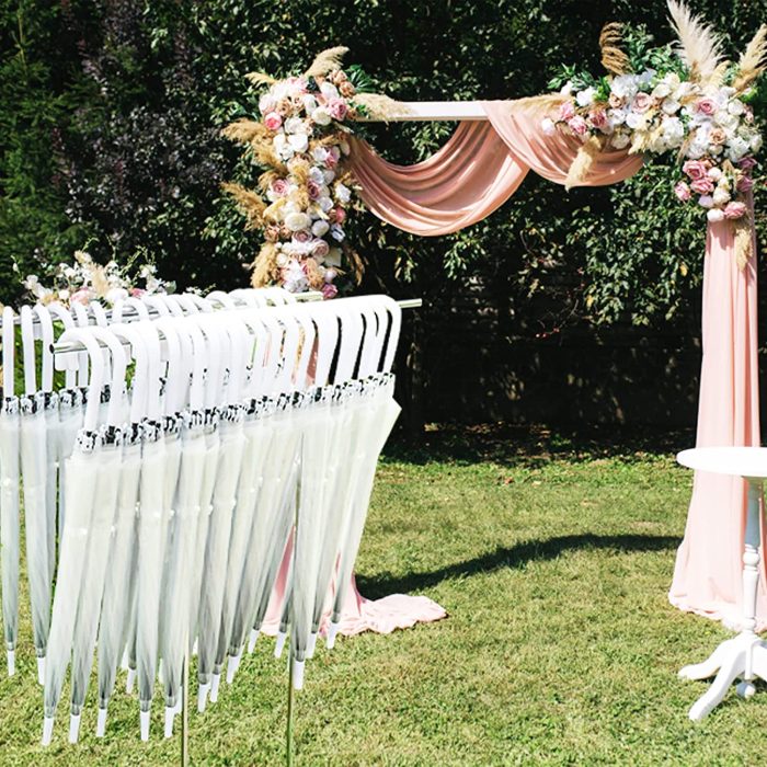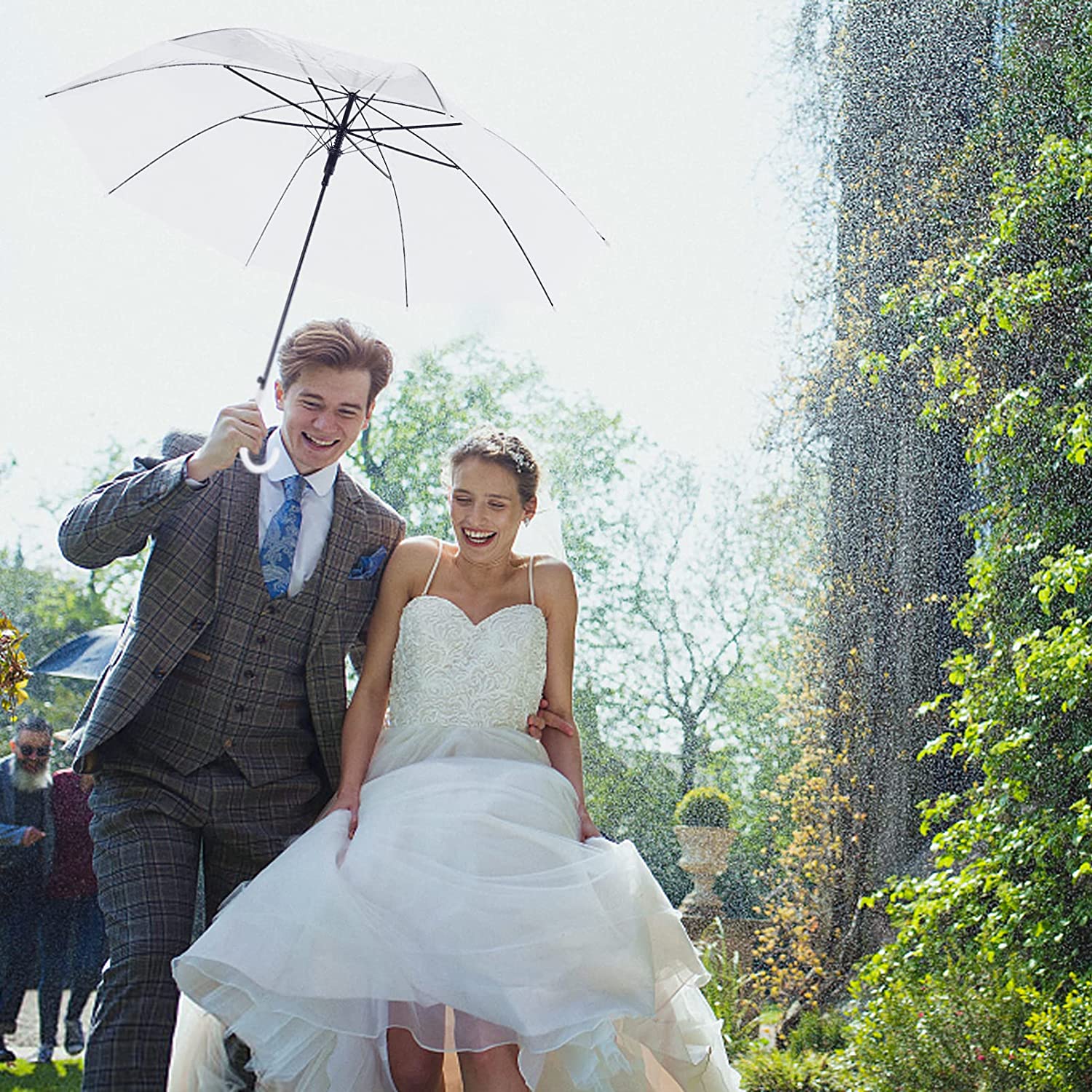 Windproof Structure: The clear wedding umbrellas equipped with chrome-plated sturdy metal shafts and 8 resin-reinforced fiberglass ribs which flex slightly to withstand powerful gusts without turning inside out