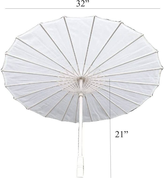 32 Chinese Japanese Umbrella Size:You will get an antique Japanese silk printed umbrella. Its open size is 82*54 cm(32*21 inches). folded size is54*6*5 cm(21*2.3*1.9 inches).Weight is 0.3 kg (0.66 lb).Perfect for children over 10 years old and adults.