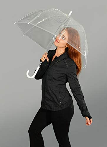 COMPLEMENTS ANY OUTFIT: Accessorize accessorize accessorize! This clear umbrella will compliment all of your wardrobe choices and matches any outfit. Lightweight and durable this amazing umbrella gives you the best of both worlds. Keeps you dry happy and safe so you can look good wherever you go!