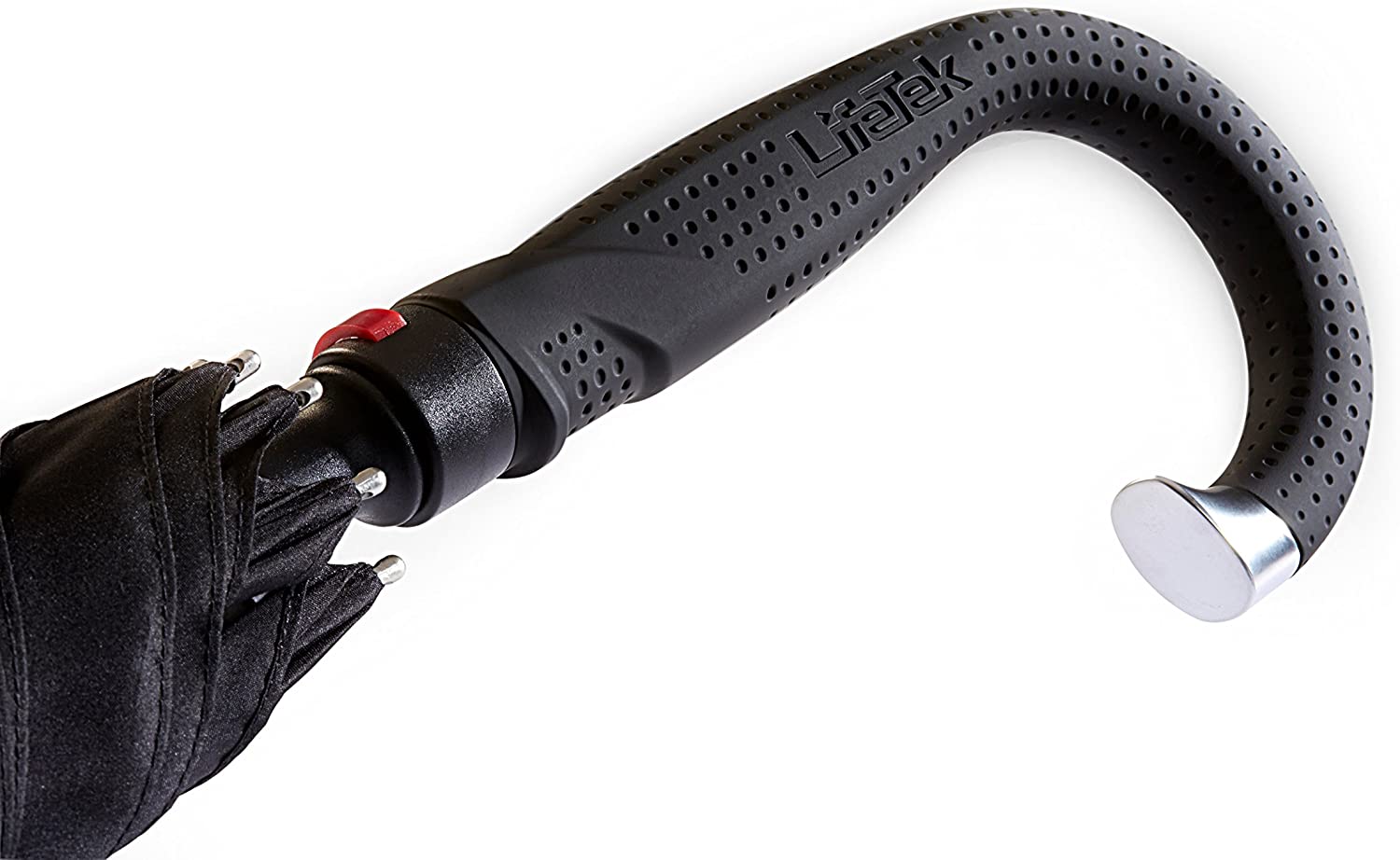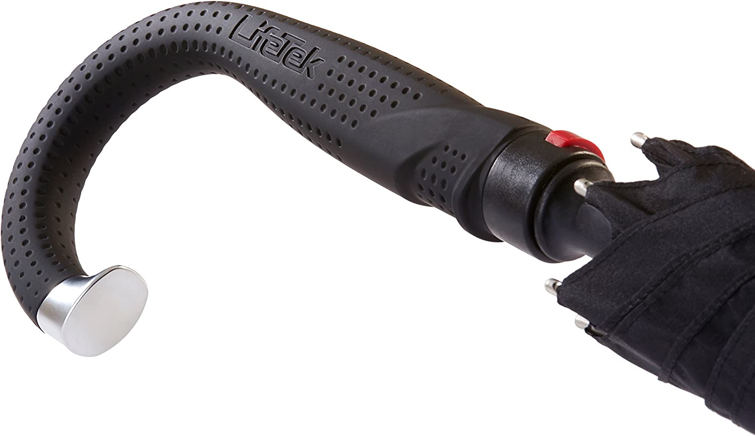 Kingston FX1 Automatic Open Cane Umbrella: This black umbrella is our modern take on a timeless classic cane-style umbrella. It exudes style sophistication and quality with its ergonomically sculpted comfort grip handle and silver accents. The auto open mechanism makes it fast and easy to deploy the oversized umbrella canopy – just a simple push of the newly integrated handle button and staying dry never looked so good!