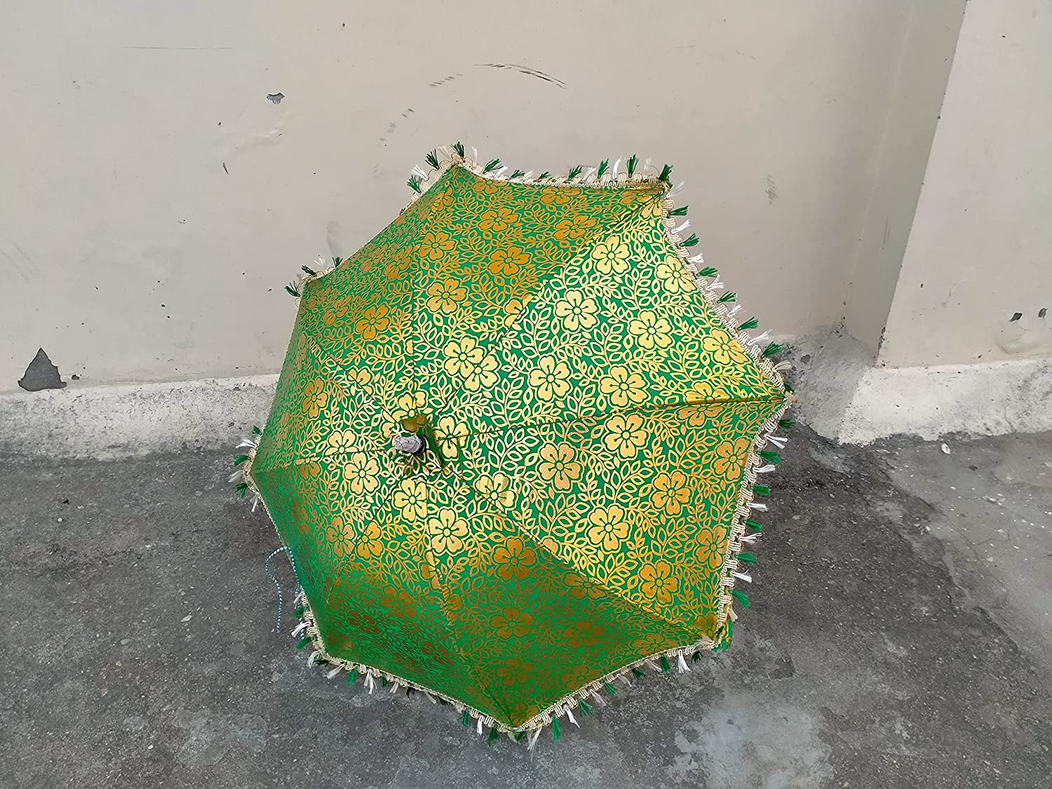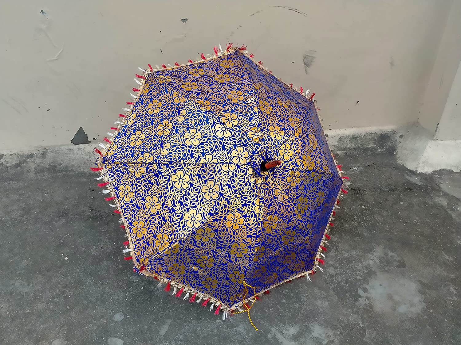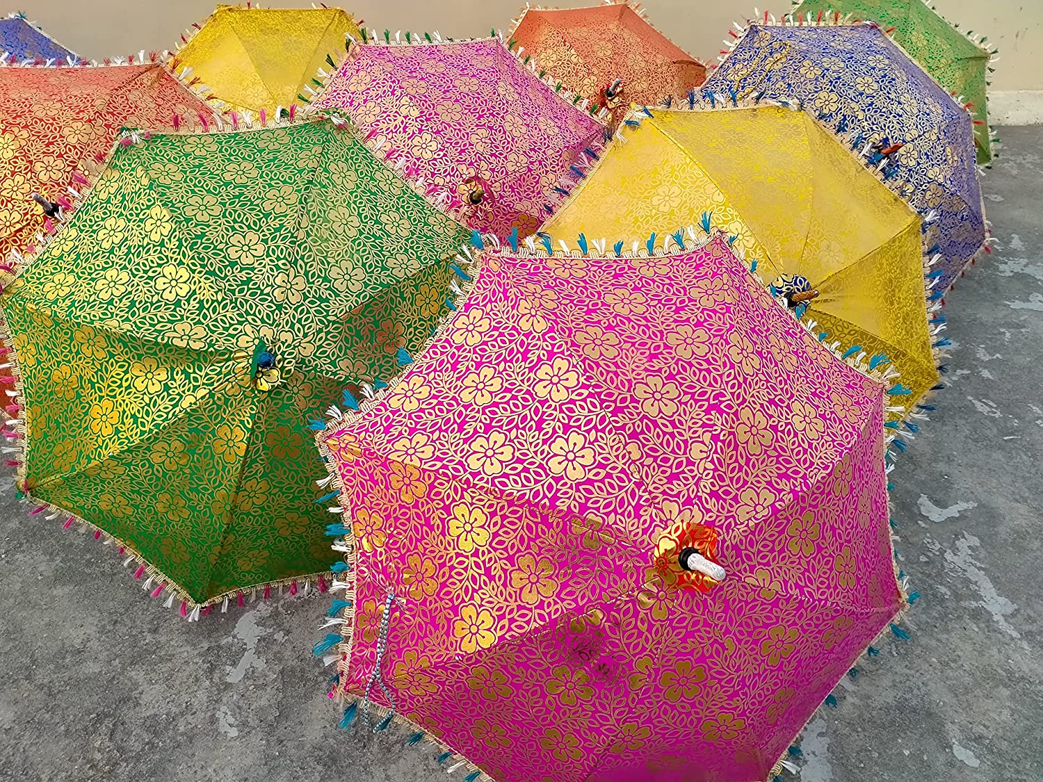 The umbrella is beautiful and complete decorated with embroidery work.His umbrella is handcrafted by village artists in Rajasthan These handicrafts are designed in various color combination and are offered in a multitude of motifs patterns various other specifications. Eye-catching appearance wide space and high load bearing are added on features that makes our umbrella a preferred one .These umbrella are handcrafted and hence give a gorgeous overall look. Washing Instruction: Dry Clean.