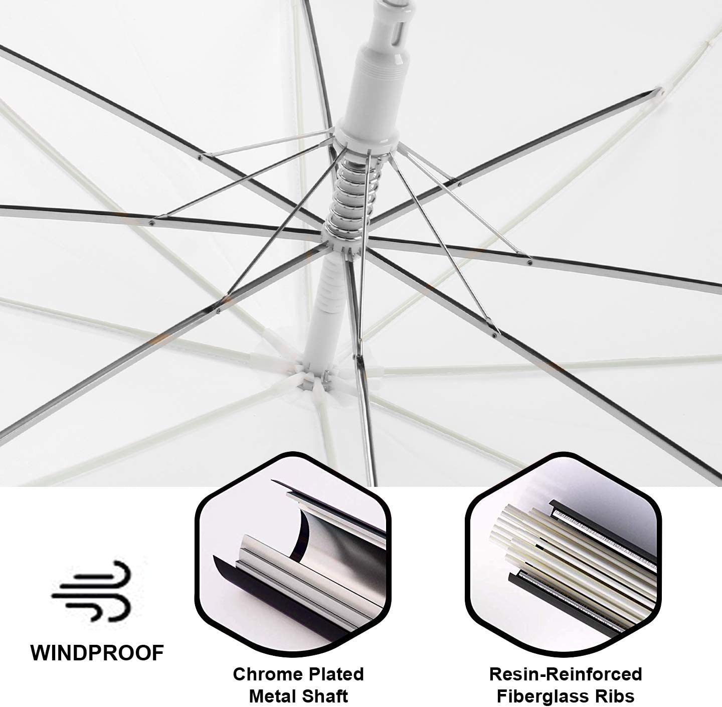 WIND-DEFYING CONSTRUCTION – fortified with chrome plated strong metal shaft and 8 resin-reinforced fiberglass ribs that flex slightly to withstand powerful gusts without turning inside out. Ultra resistance to rust and corrosion.