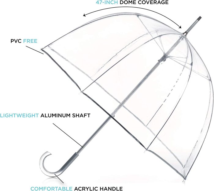 CLEAR STYLISH BUBBLE UMBRELLA: Waterproof clear canopy for maximum rain coverage and see through visibility