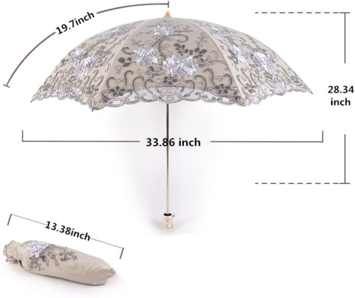This elegant lace parasol umbrella is designed to protect you from rain and sun