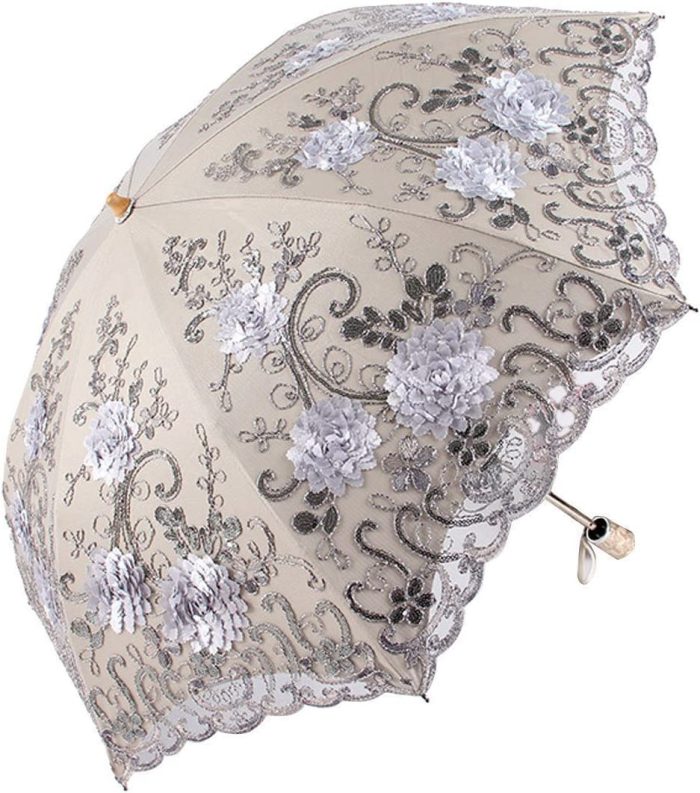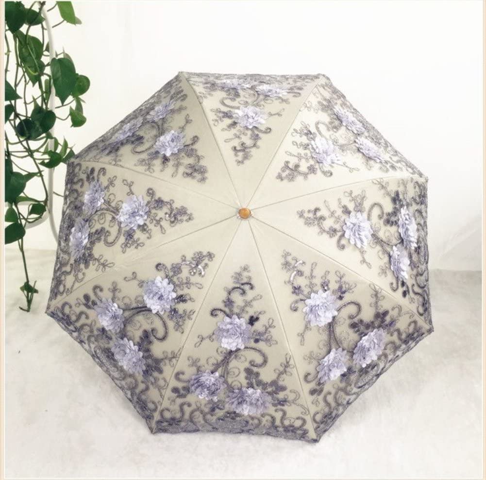 Custom Wedding Umbrellas Vintage Lace UV Sun Parasol Folding 3D Flower Embroider