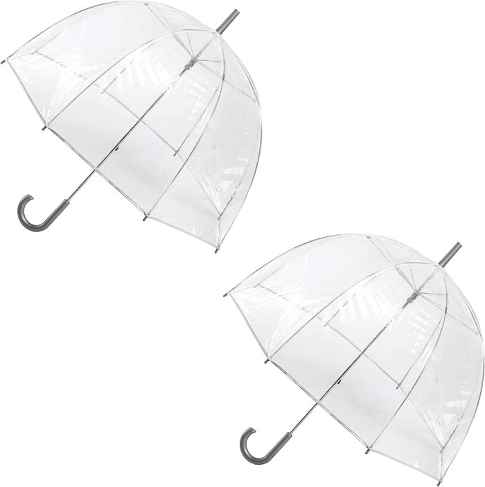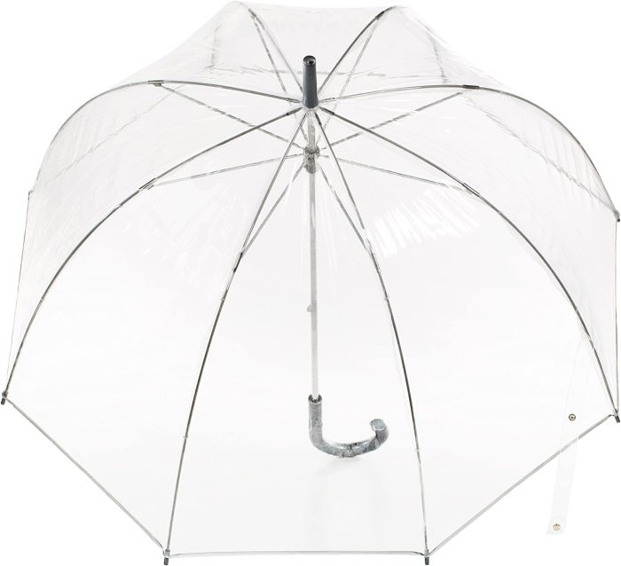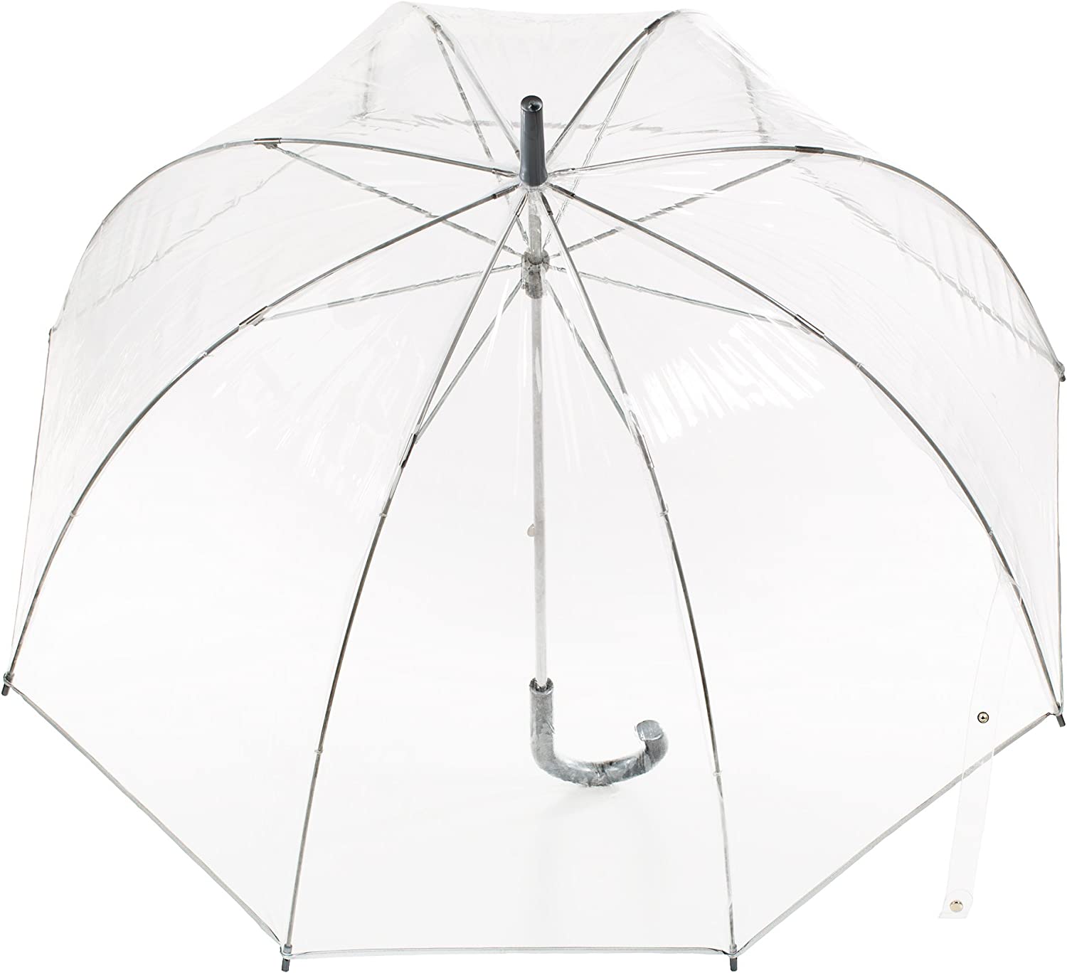 DURABLE CONSTRUCTION: Our umbrellas are made to last; this clear dome umbrella features a steel shaft with a classic curved handle design so your umbrella is easy to carry rain or shine