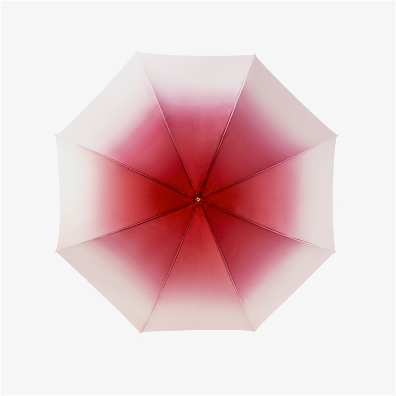 Simpler, umbrellas with a logo imprint mainly fall into the category of our stock umbrellas. Stock umbrellas come in a number of styles and sizes and start out fully assembled. We print and ship our stock logo umbrellas within ten days for a fast turnaround. Of course, there are limitations when printing on finished umbrellas. On a stock umbrella, we print in the center of the umbrella panel towards the bottom of the panel. On a finished umbrella, that is the only area of the panel flat enough to place on the printing press. We are not able to print across the seams or in the center of the overall umbrella on a stock umbrella because the ribs will interfere with the print.Double handle umbrella with curved handle,Ladies curved handle long umbrella