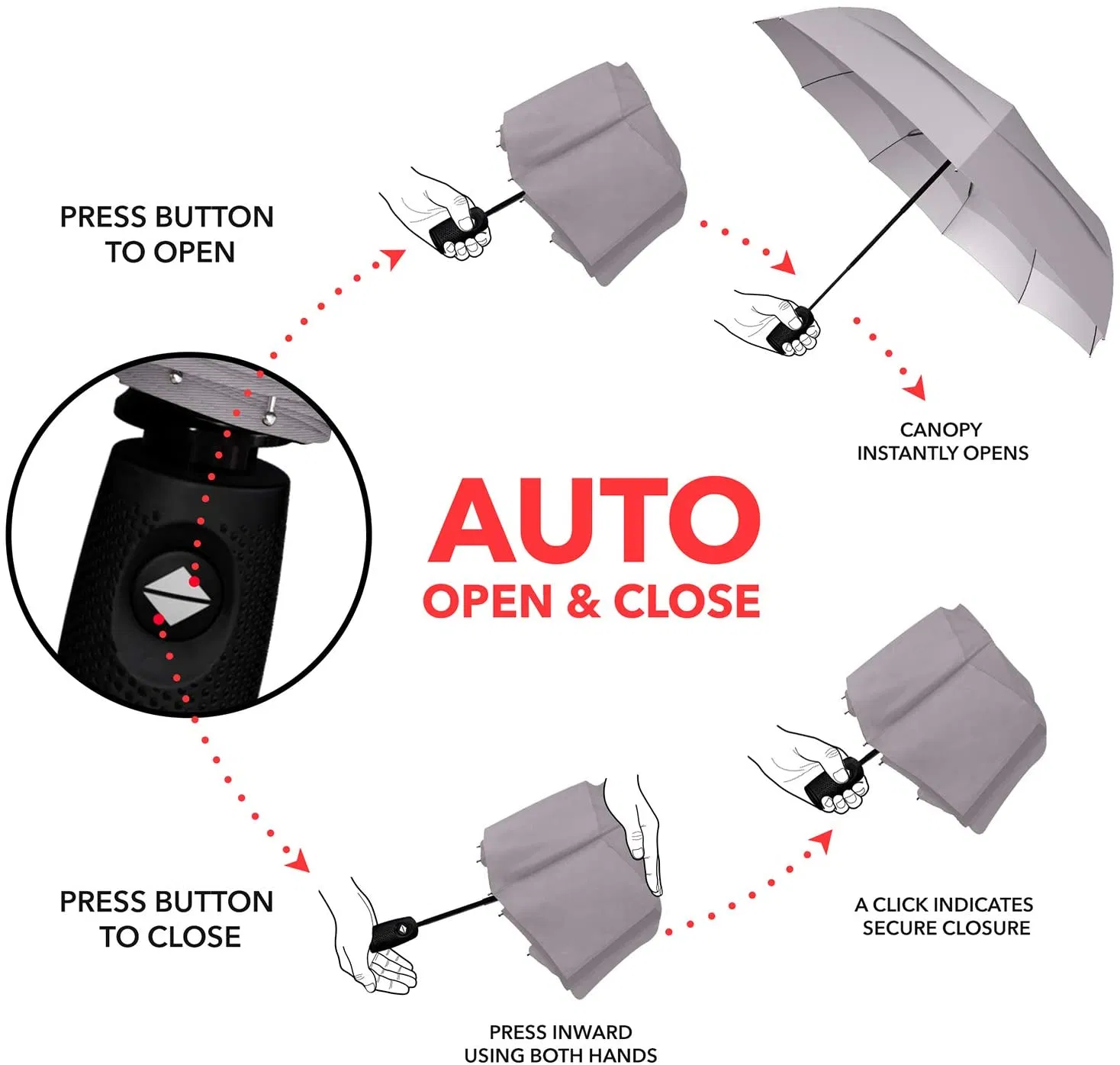 | Name | Factory Grey Foldable Double Layer Travel Umbrellas With Automatic Strong Windproof Function |