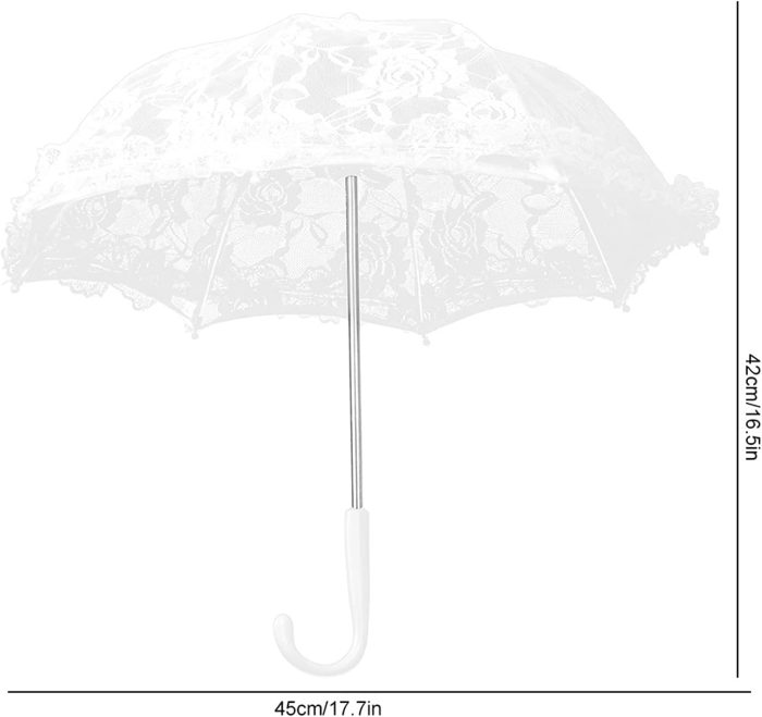 [Decorative Umbrella for Parties]: White lace parasol umbrella has Elegant design makes your wedding more romantic you can enjoy the wedding day with this embroidery umbrellas and attractive wedding umbrella; This one-of-a-kind lace umbrella is perfect for photo shoots formal occasions and weddings! Will add a charming and vintage flair to little girl’s outfits or use as part of a centerpiece