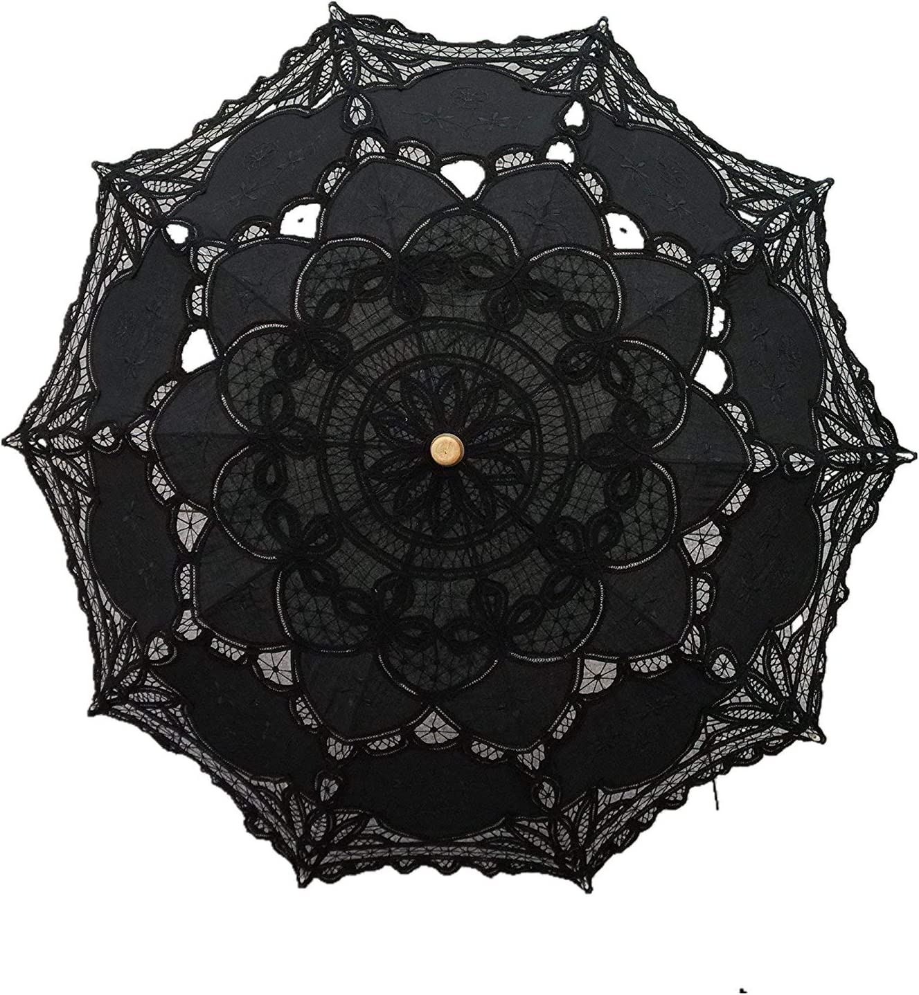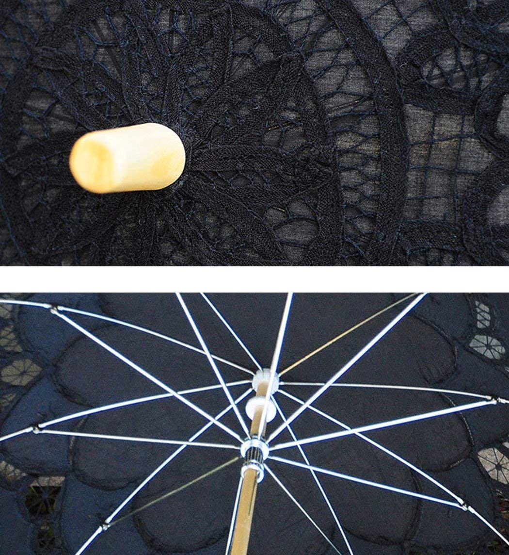 Lace Wedding Umbrella Parasol For Bride Cotton Fashion Wooden Handle Decoration Umbrella Black
