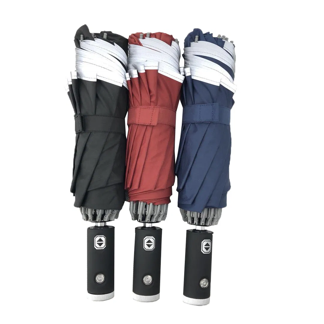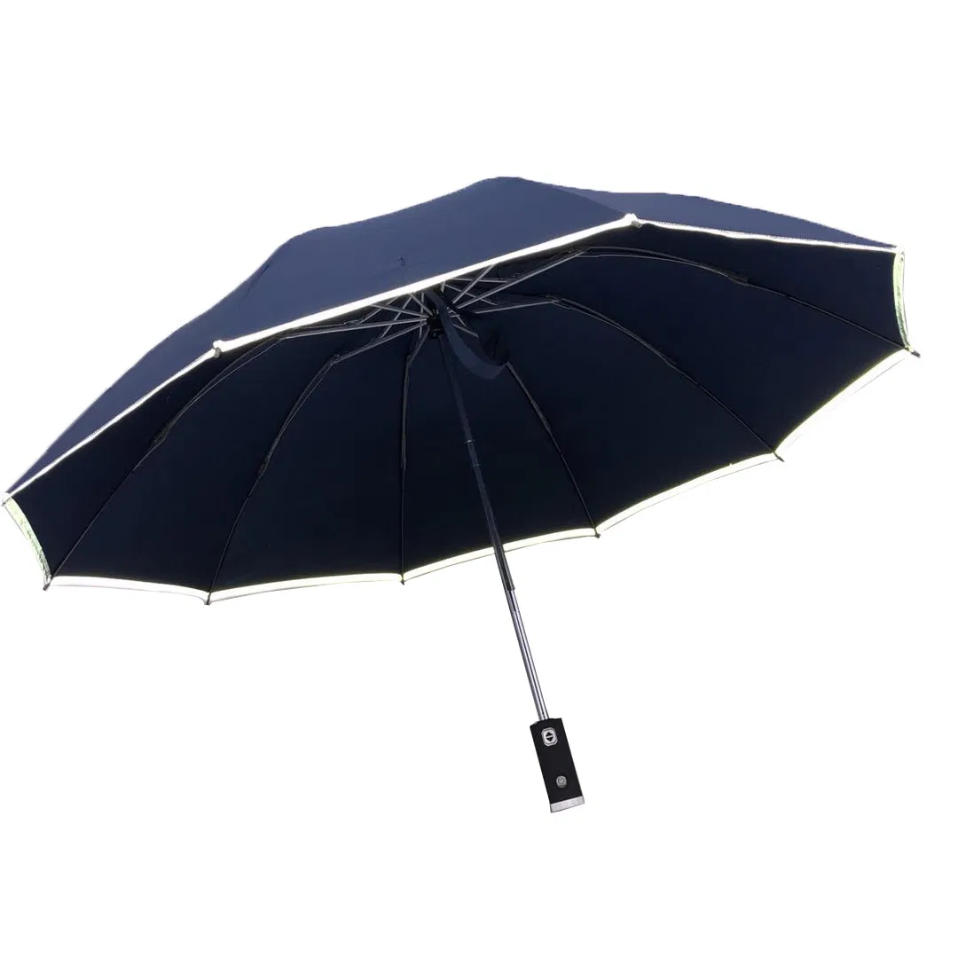 LED Flashlight 3-Fold 10-Panel Reflective Rain Umbrella | China Factory Promotion