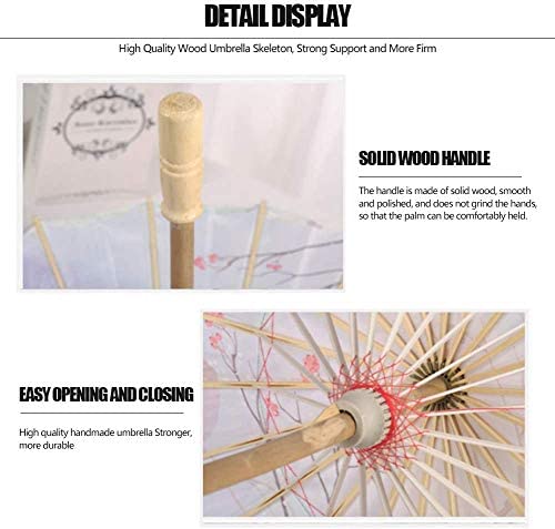 【Handmade Umbrella】 The Paper Parasol is handmade. The oiled paper canopy and wooden handle will provide it a strong support.The diameter of the umbrella surface is about 23.6 inches please check carefully after carefully checking.