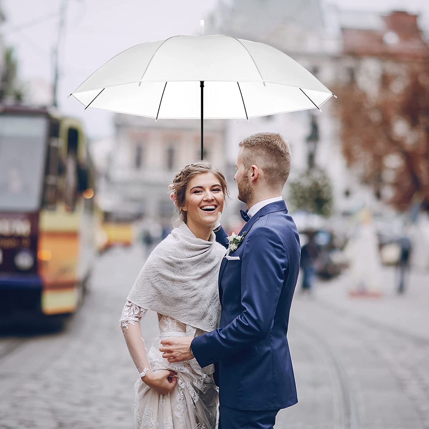 Windproof Construction: each of the transparent wedding umbrella is designed with 41.3 inches canopy and 37 inches umbrella span which is large enough to provide secure coverage for your head and shoulders from rain and wind for two people and the 28.3 inches shaft is proper length for kids teens and adults