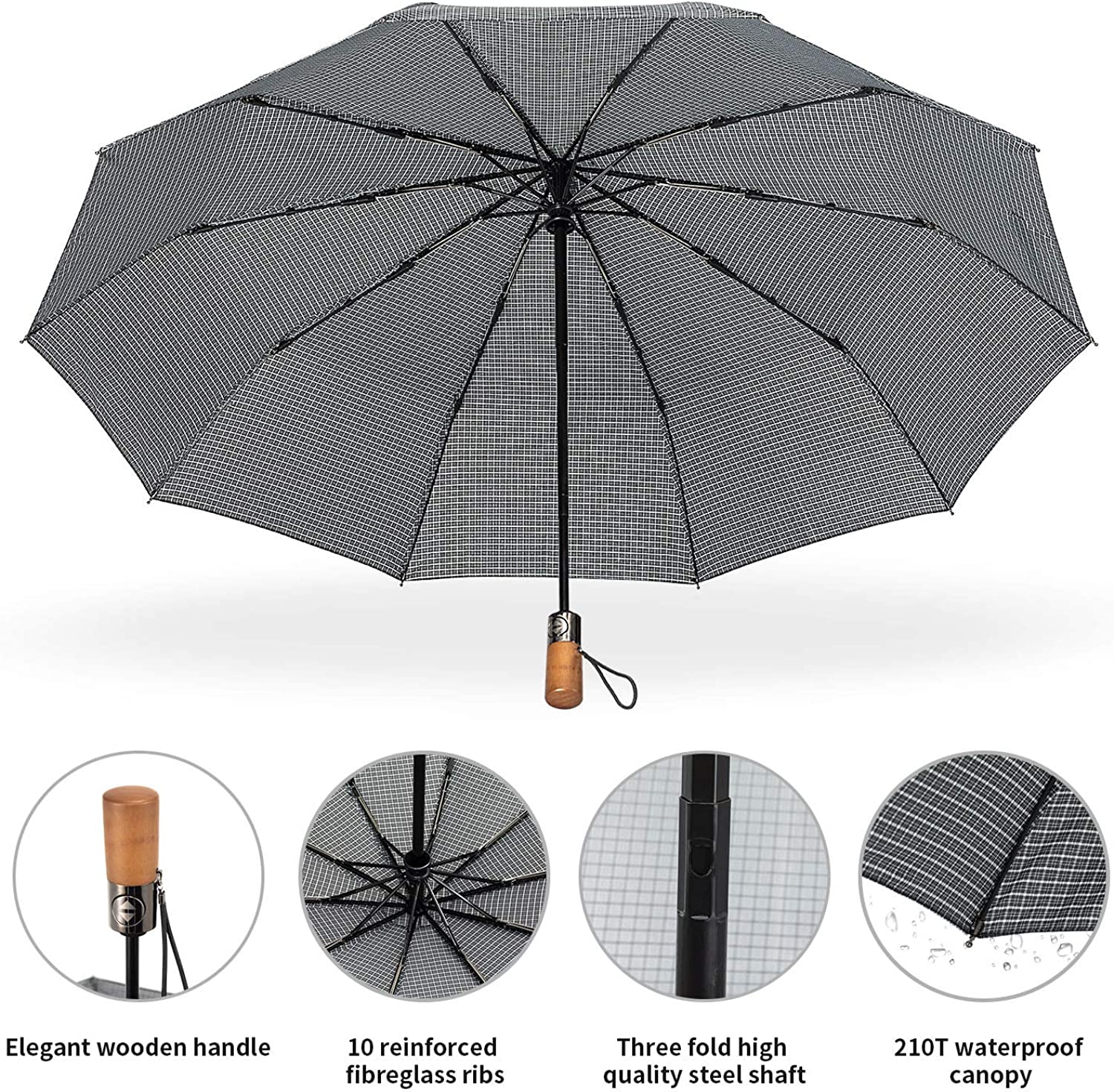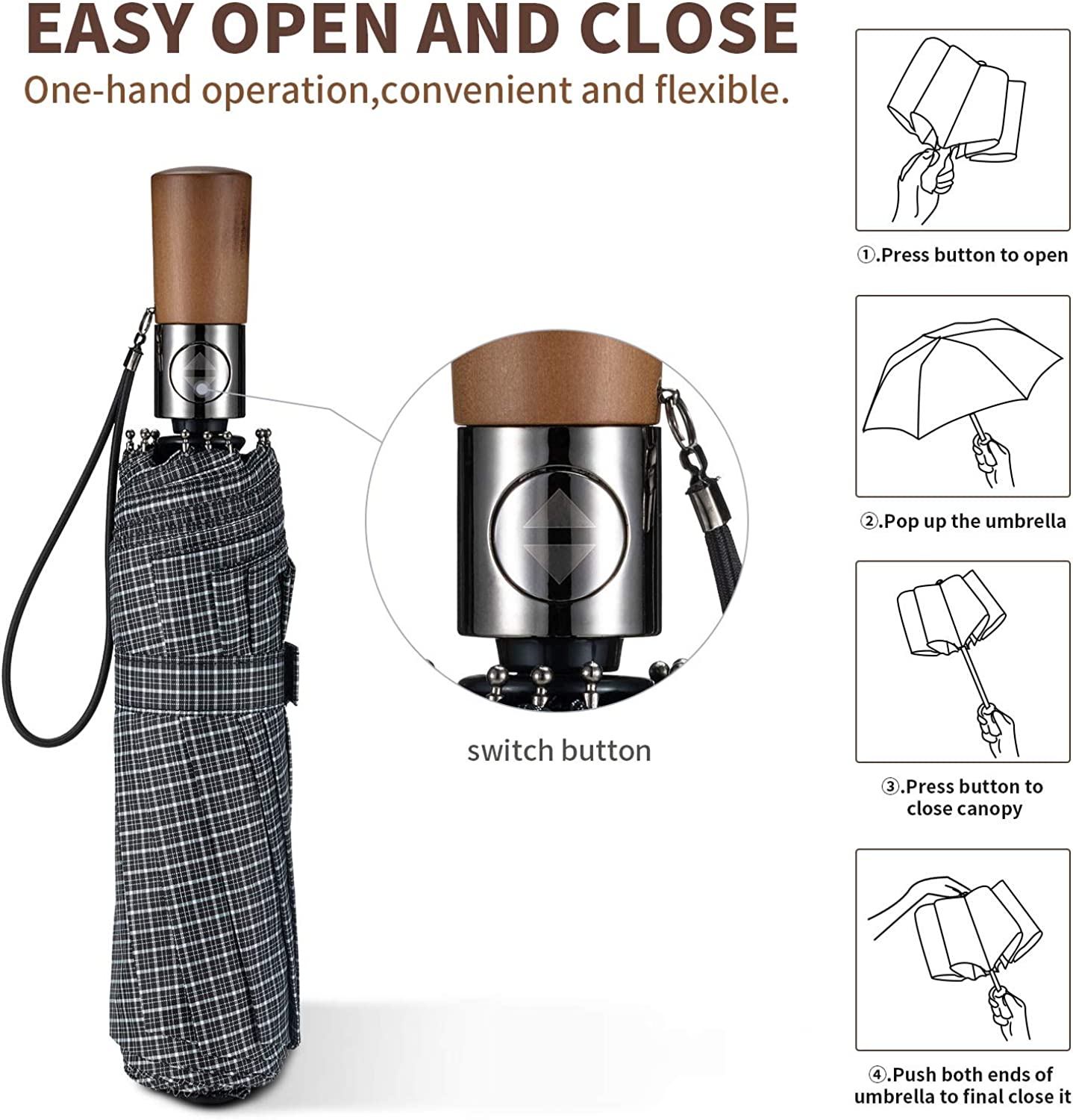 Easy for you to open the umbrella with automatic button in one-hand operation especially convenient when getting in and out of a car holding a child or carrying other luggage.