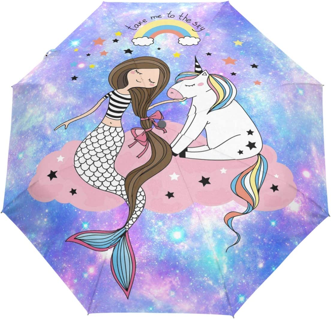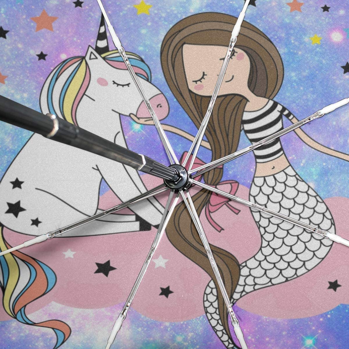 Logo parasol Umbrellas With Your Brand Cute Mermaid Unicorn Auto Umbrella Open Close Shining Stars Galaxy Umbrellas Wind