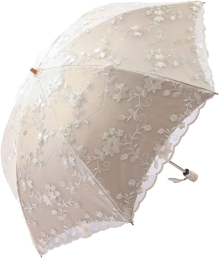 Logo parasol Umbrellas With Your Brand Embroidery Lace Flower Princess Sun Rain Umbrella Decorative Parasol 05Beige