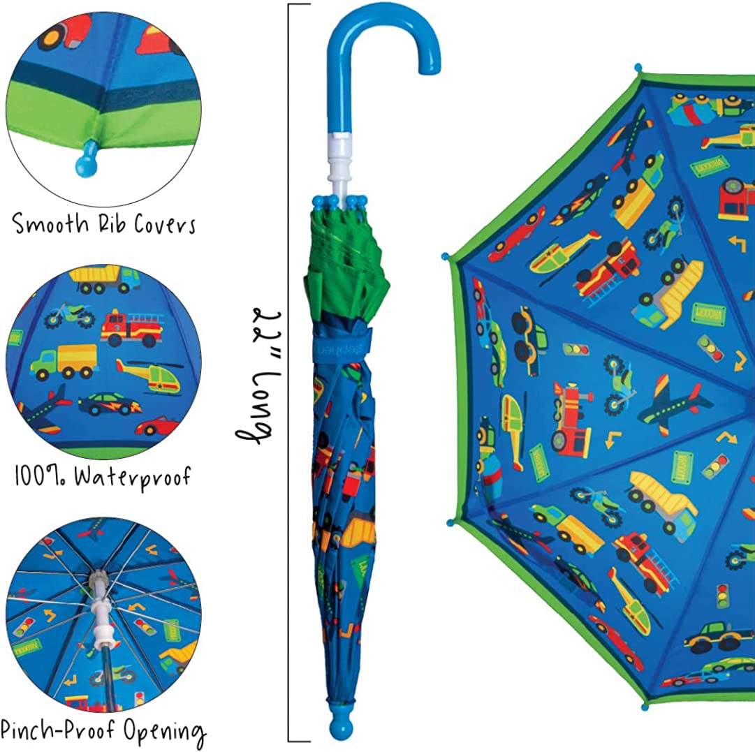 SPECIAL FEATURES: Great for rainy days this umbrella will keep little ones dry on a wet day. With a curved handle that’s easily hung and wrap-around hook-and-loop closure for storage it’s portable and compact. Easy open and close mechanics make staying out of the elements simple without extra effort.