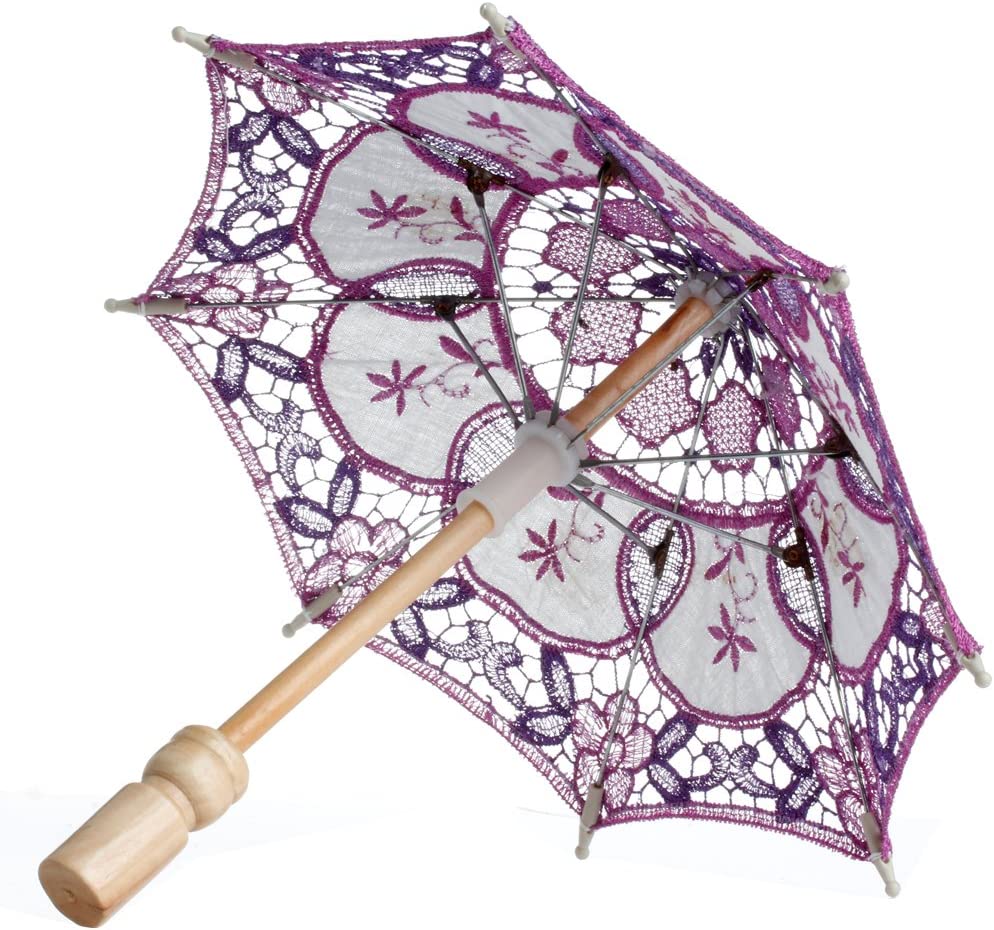 Logo parasol Umbrellas With Your Brand Lace Embroidered Parasol Umbrella for Bridal Wedding Party Decoration (Purple)