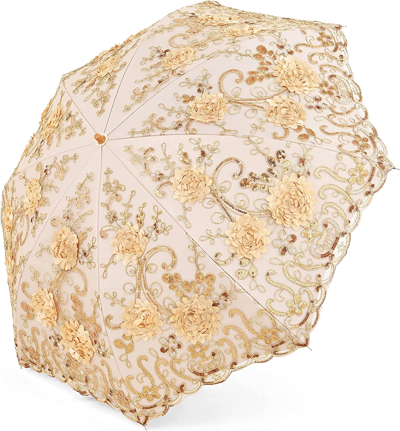 Logo parasol Umbrellas With Your Brand Lace Parasol Ultraviolet-Proof Folding Umbrella UPF50+ Vintage Flower Embroidery Umbrella for Wedding Party and Photo Shooting