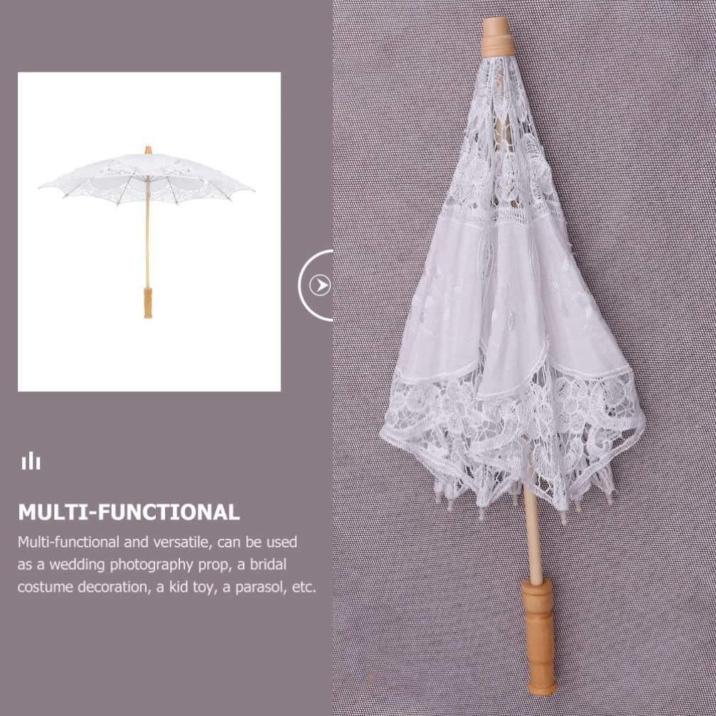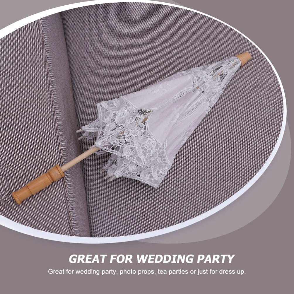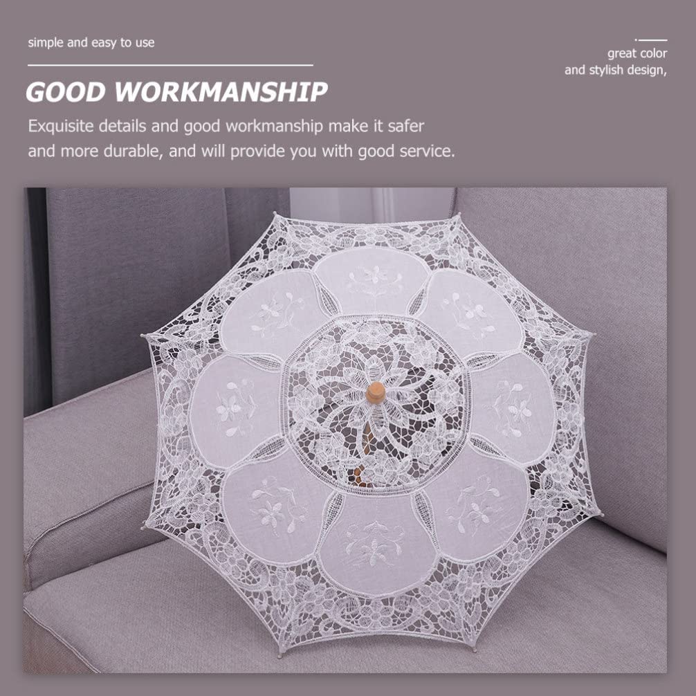 Lace Umbrella: Holding it in your hand to elegance to your look a perfect accessory for wedding bride.Wood handle great durability and comfortable to grip.