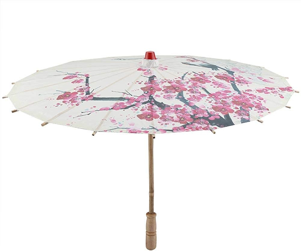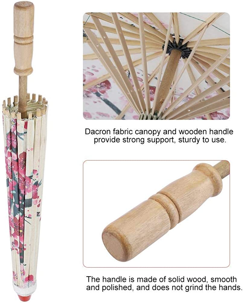 BEAUTIFUL PLUM BLOSSOM: It is the earlist umbrellas traditional plum blossom pattern(symbol: indomitable perseverance). In addition to being a sun umbrella to keep the sun off your head it can also cover the bride at the wedding to avoid evil ideal for Indoor and Outdoor Decoration Party Dancing Wedding Women’s Kimono Robe Japanese Dress Photography Cosplay Costume and more.