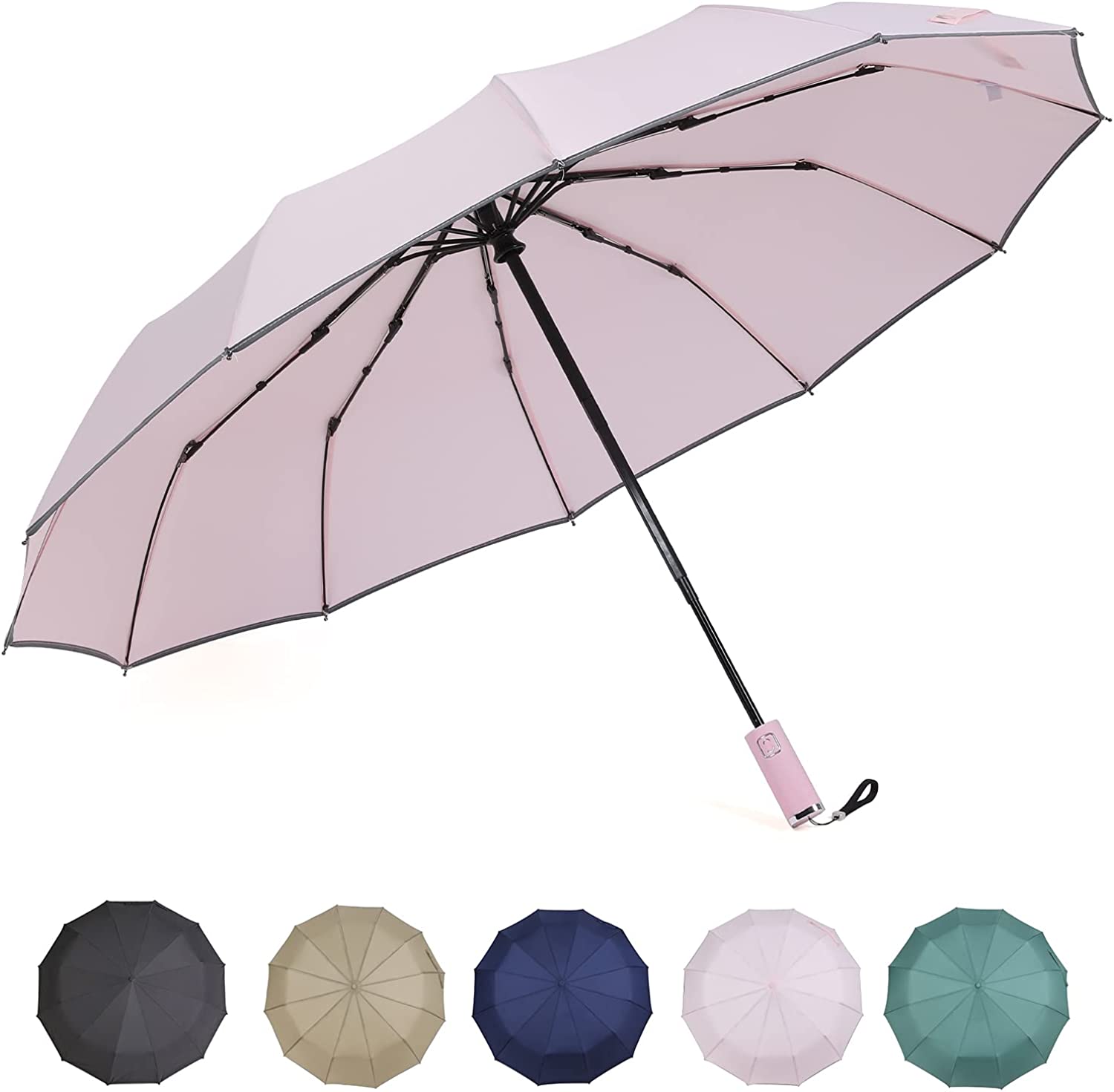 ??12 Ribs Folding Umbrellas Windproof : 12 fiberglass fiber ribs and metal shaft which can withstand wind speeds of up to 76 MPH without turning over The high sturdy umbrellas can withstand any type of weather. very convenience for women and men