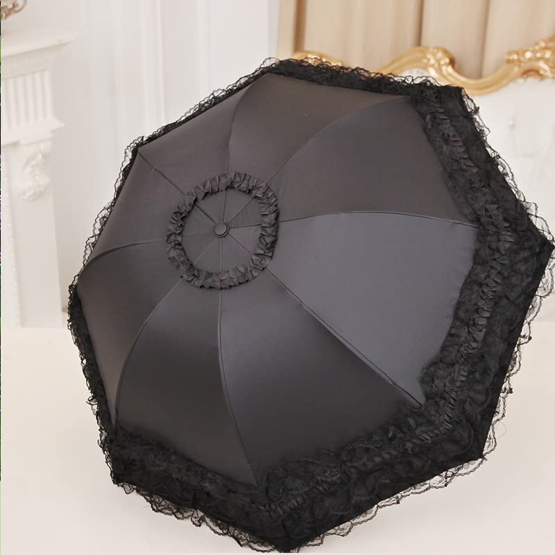 The foldable parasol umbrella is very lady like Cute and Sexry Accessory gothic aesthetic lace detail is super adorable well made priced right and exactly what you imagined.