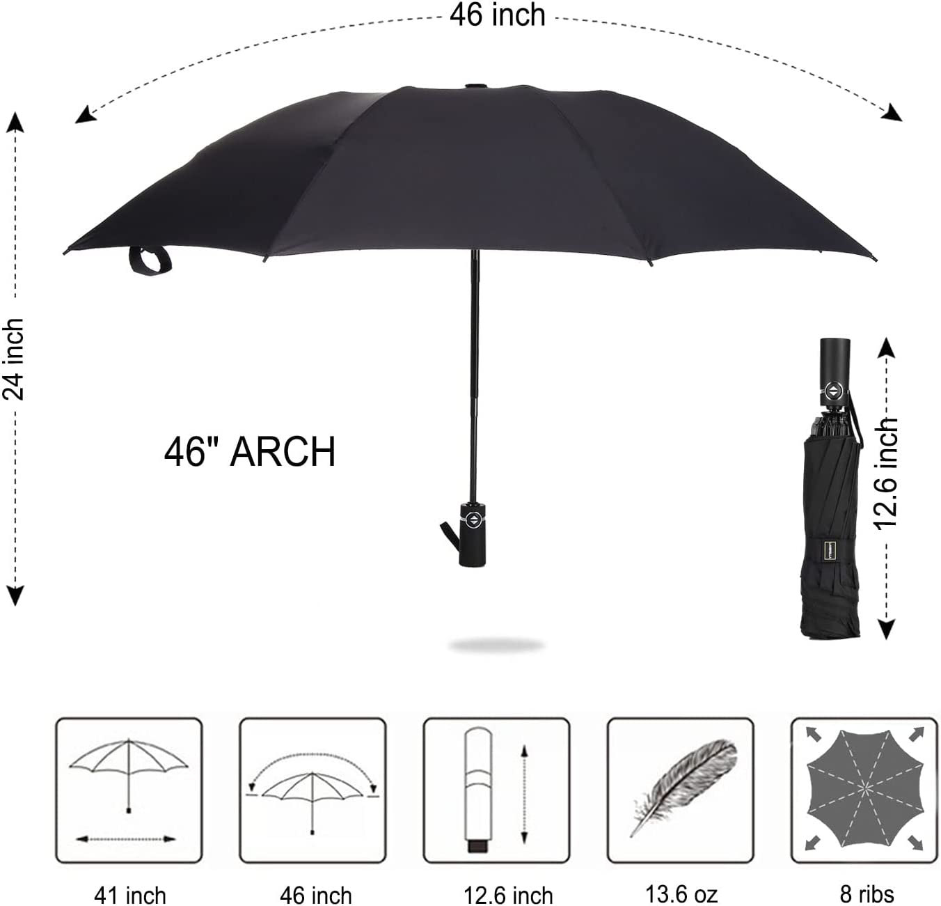 SUPERIOR WINDPROOF AND WATERPROOF: This windproof umbrella is flexiable enough to withstand powerful wind without turning inside out. It is fortified with 8 reinforced fiberglass ribs. The cannopy is made of high density 210T waterproof material which makes it good at waterproof function. Besides it is 46 inch arc you don’t have to choose between gigantic windproof umbrellas or tiny ones that cannot provide minimal wind protection.