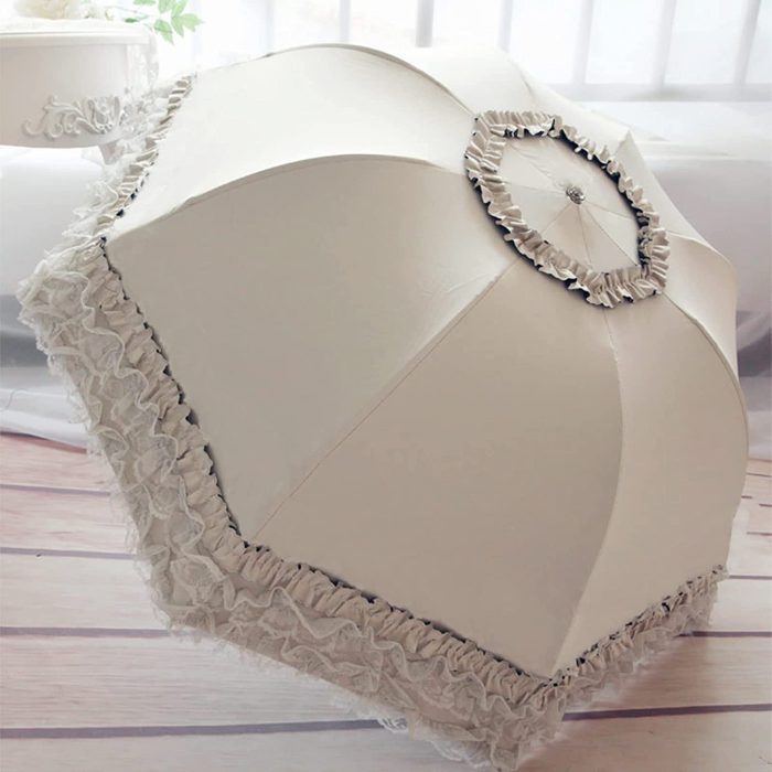 [Sun Rain Umbrella]: The white lace parasol can block the sun and rain.