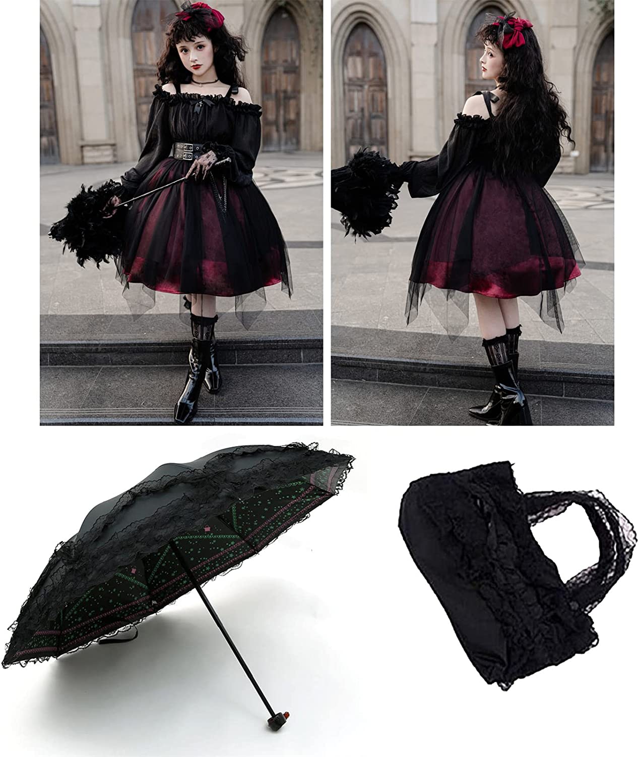 [Folding Umbrella]: Really pretty gothic lolita-like parasol. Diameter: 34.65inches; folded length: 9.45inches.