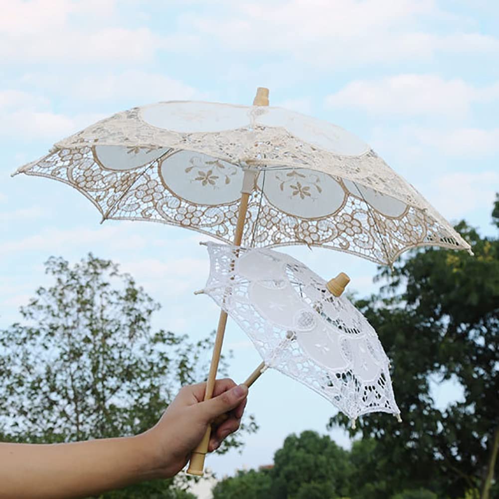 Specification:Weight: 2.2oz/64g (small) 4.1oz/118g (large)Product size:;nbsp;Small Size:diameter 11.4inch/29cm umbrella surface radius 7inch/18cm umbrella handle 10.2inch/26cmLarge Size:diameter 17.7inch/45cm umbrella surface radius 12.6inch/32cm umbrella handle 16.9inch/43cmUmbrella ribs: 8Material: silk cloth + lace umbrella + wooden handleColor: white beigeStyle: small largeQuantity: 1pcsPacking: OPP bagStyle: fresh and sweetPackage description: 1xLace UmbrellaNote:1.Manual measurement has been used there may be some reasonable error.2.Items may slightly differ from photo in terms of color due to the lighting or your monitor’s display.3.1cm0.39inchThanks for your understanding!HAPPY SHOPPING!