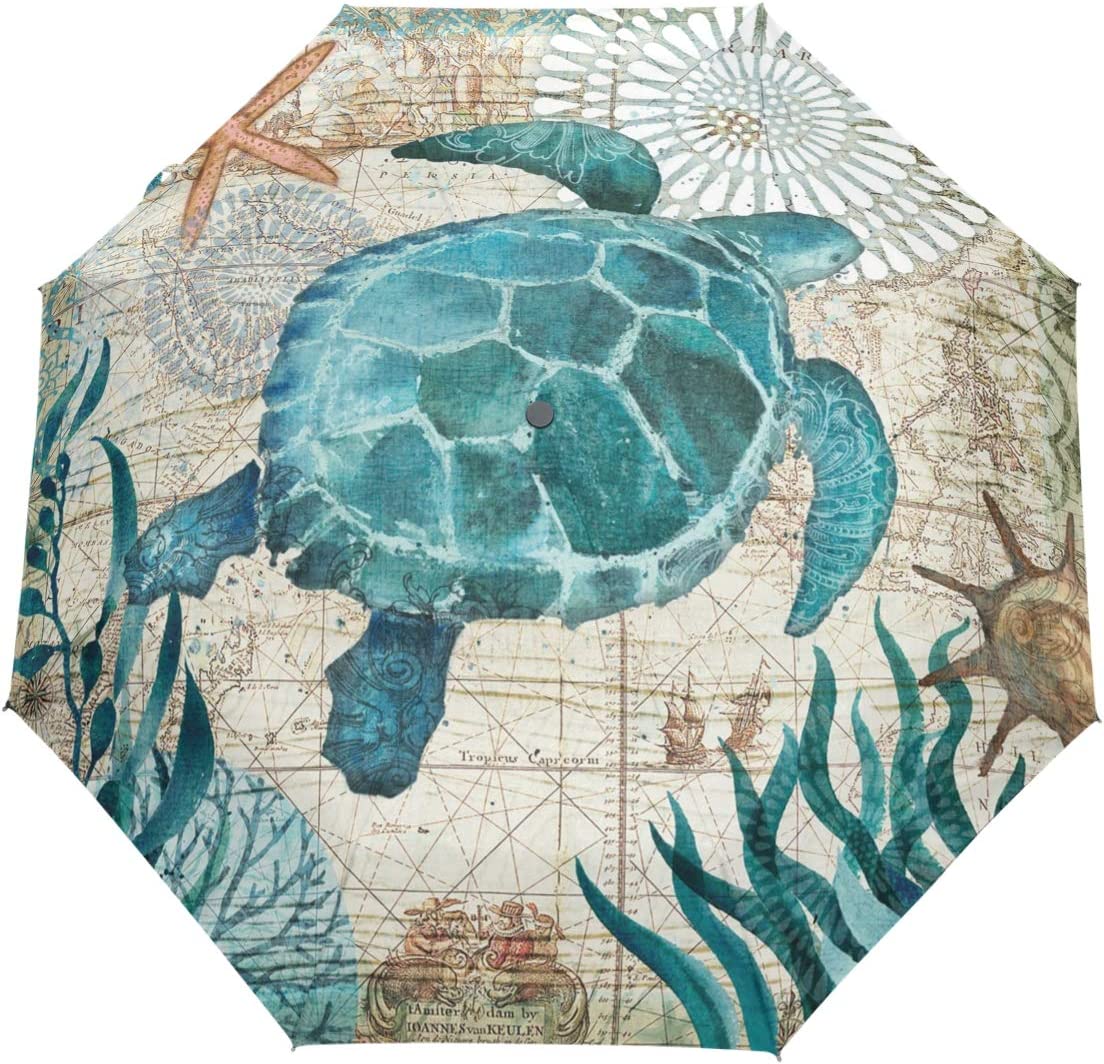 Logo parasol Umbrellas With Your Brand Vintage Ocean Turtle Umbrella Automatic Open Close Sea Starfish World Map Anti-UV