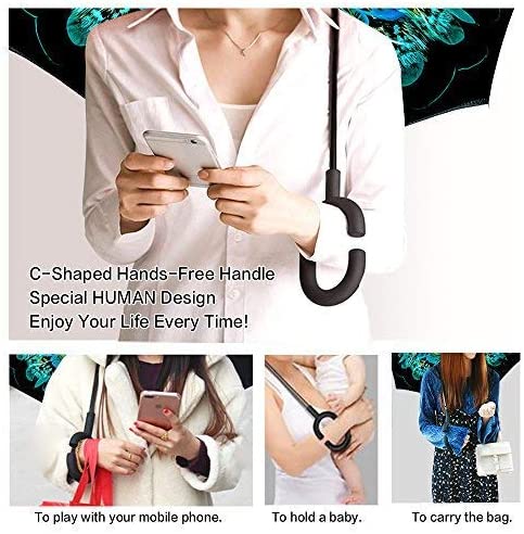Logo parasol Umbrellas With Your Brand Windproof Inverted Reverse Umbrella with UV Protection C-Shaped Handle Double La