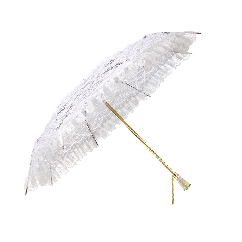 Simpler, umbrellas with a logo imprint mainly fall into the category of our stock umbrellas. Stock umbrellas come in a number of styles and sizes and start out fully assembled. We print and ship our stock logo umbrellas within ten days for a fast turnaround. Of course, there are limitations when printing on finished umbrellas. On a stock umbrella, we print in the center of the umbrella panel towards the bottom of the panel. On a finished umbrella, that is the only area of the panel flat enough to place on the printing press. We are not able to print across the seams or in the center of the overall umbrella on a stock umbrella because the ribs will interfere with the print.Lottie-Bud silk folding umbrella,Ladies folding umbrella