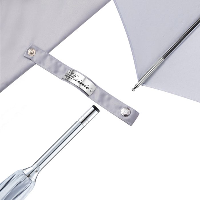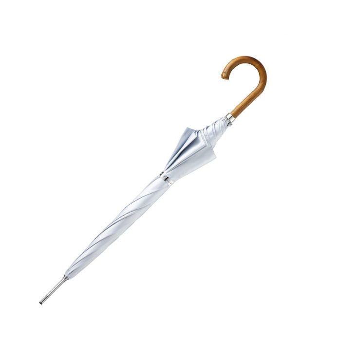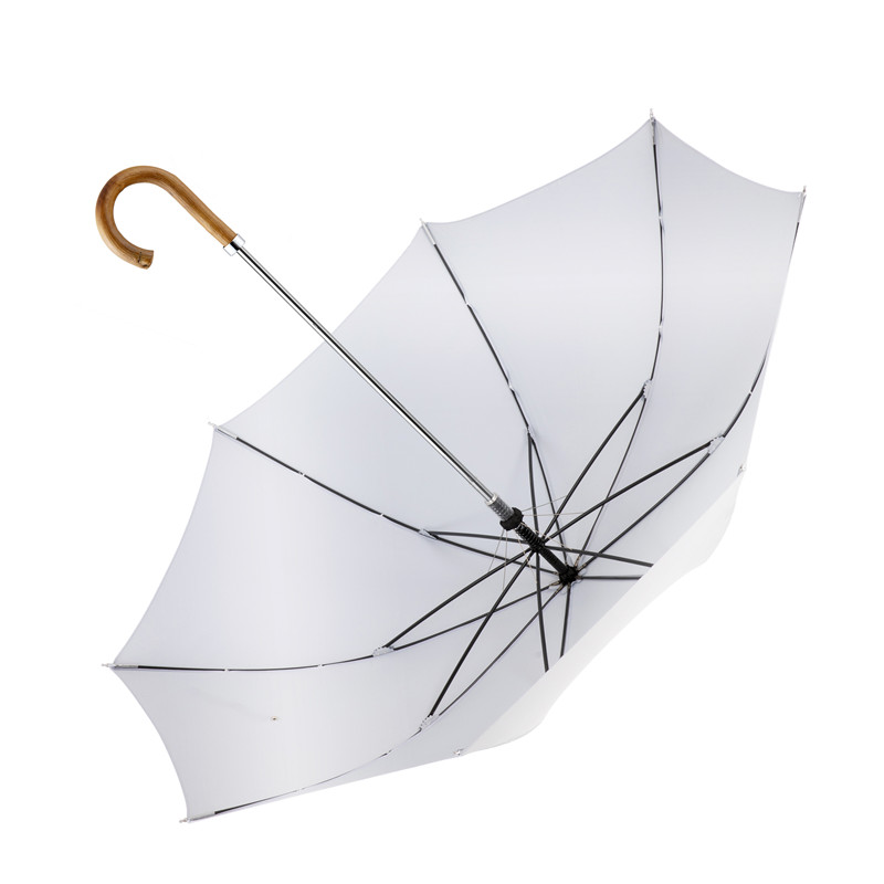 Simpler, umbrellas with a logo imprint mainly fall into the category of our stock umbrellas. Stock umbrellas come in a number of styles and sizes and start out fully assembled. We print and ship our stock logo umbrellas within ten days for a fast turnaround. Of course, there are limitations when printing on finished umbrellas. On a stock umbrella, we print in the center of the umbrella panel towards the bottom of the panel. On a finished umbrella, that is the only area of the panel flat enough to place on the printing press. We are not able to print across the seams or in the center of the overall umbrella on a stock umbrella because the ribs will interfere with the print.Malacca cane-long umbrella,Men’s curved handle long umbrella
